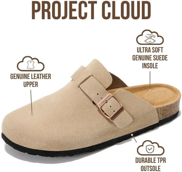 imageProject Cloud Mens Clogs  100 Full Grain Genuine Leather Memory Foam Clogs for Men Arch Support Cork Footbed  Non Slip Platform Mules BrooklynSand Suede