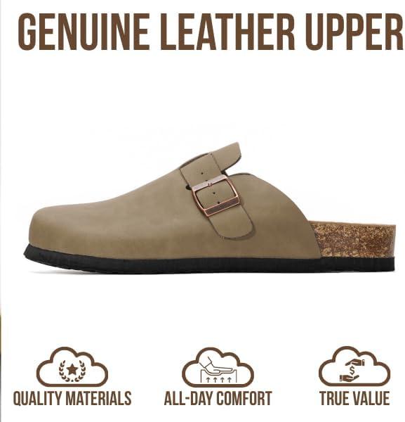Project Cloud Mens Clogs – 100% Full Grain Genuine Leather Memory Foam Clogs for Men Arch Support Cork Footbed – Non Slip Platform Mules (Brooklyn)(Taupe Distressed)