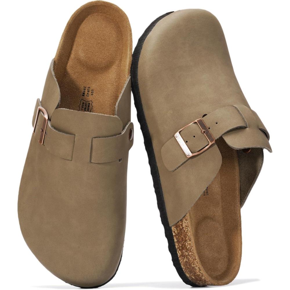 Project Cloud Mens Clogs – 100% Full Grain Genuine Leather Memory Foam Clogs for Men Arch Support Cork Footbed – Non Slip Platform Mules (Brooklyn)(Taupe Suede)