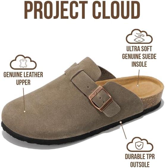 Project Cloud Mens Clogs - 100% Full Grain Genuine Leather Memory Foam Clogs for Men Arch Support Cork Footbed - Non Slip Platform Mules (Brooklyn)(Taupe Suede)