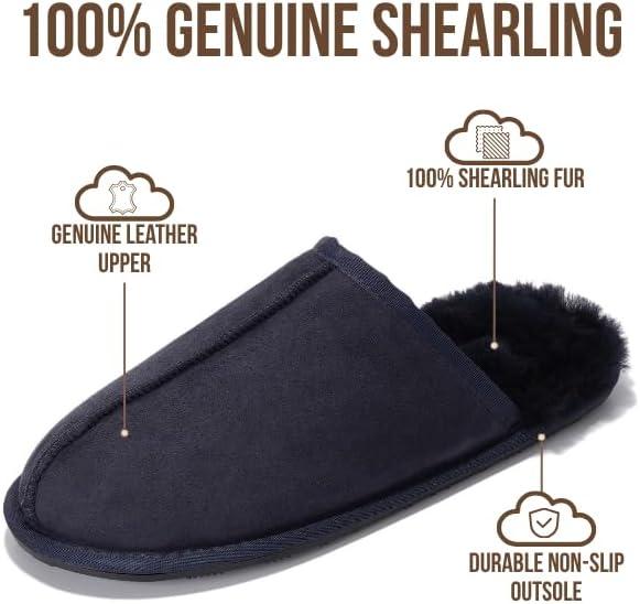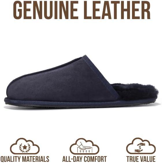 Be the first to review “Project Cloud Mens Slippers 100% Genuine Leather and Genuine Shearling Lining – House Slippers for Men with Memory Foam Insole – Lightweight & Non Slip Mens House Shoes(Navy Suede Scuff)”
