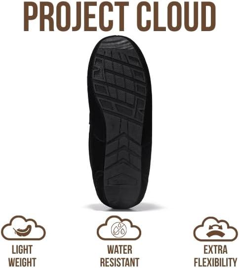 Project Cloud Mens Slippers Genuine Leather with Memory Foam Insole Mens Shoes - Non-Slip and Lightweight Indoor and Outdoor Slippers for Men (Oswin)(Black)