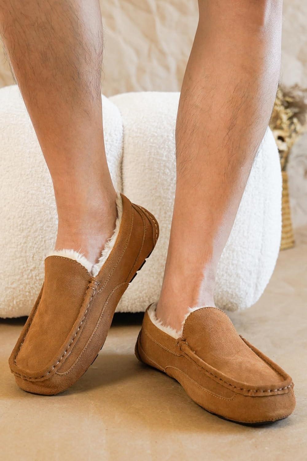Project Cloud Mens Slippers Genuine Leather with Memory Foam Insole Mens Shoes - Non-Slip and Lightweight Indoor and Outdoor Slippers for Men (Oswin)(Chestnut)