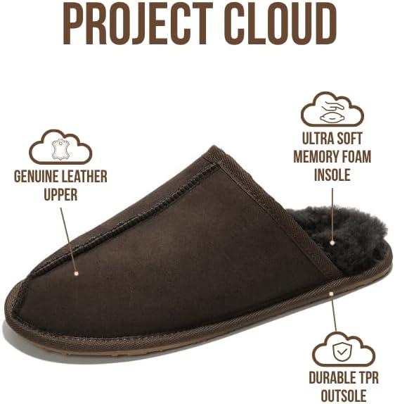 Project Cloud Mens Slippers Genuine Leather with Ultra Soft Memory Foam Insole Scuff House Slippers for Men - Lightweight and Non-Slip Cozy Men Footwear (Colin)(Chocolate)