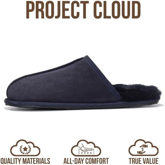 Project Cloud Mens Slippers Genuine Leather with Ultra Soft Memory Foam Insole Scuff House Slippers for Men – Lightweight and Non-Slip Cozy Men Footwear (Colin)(Navy Suede)