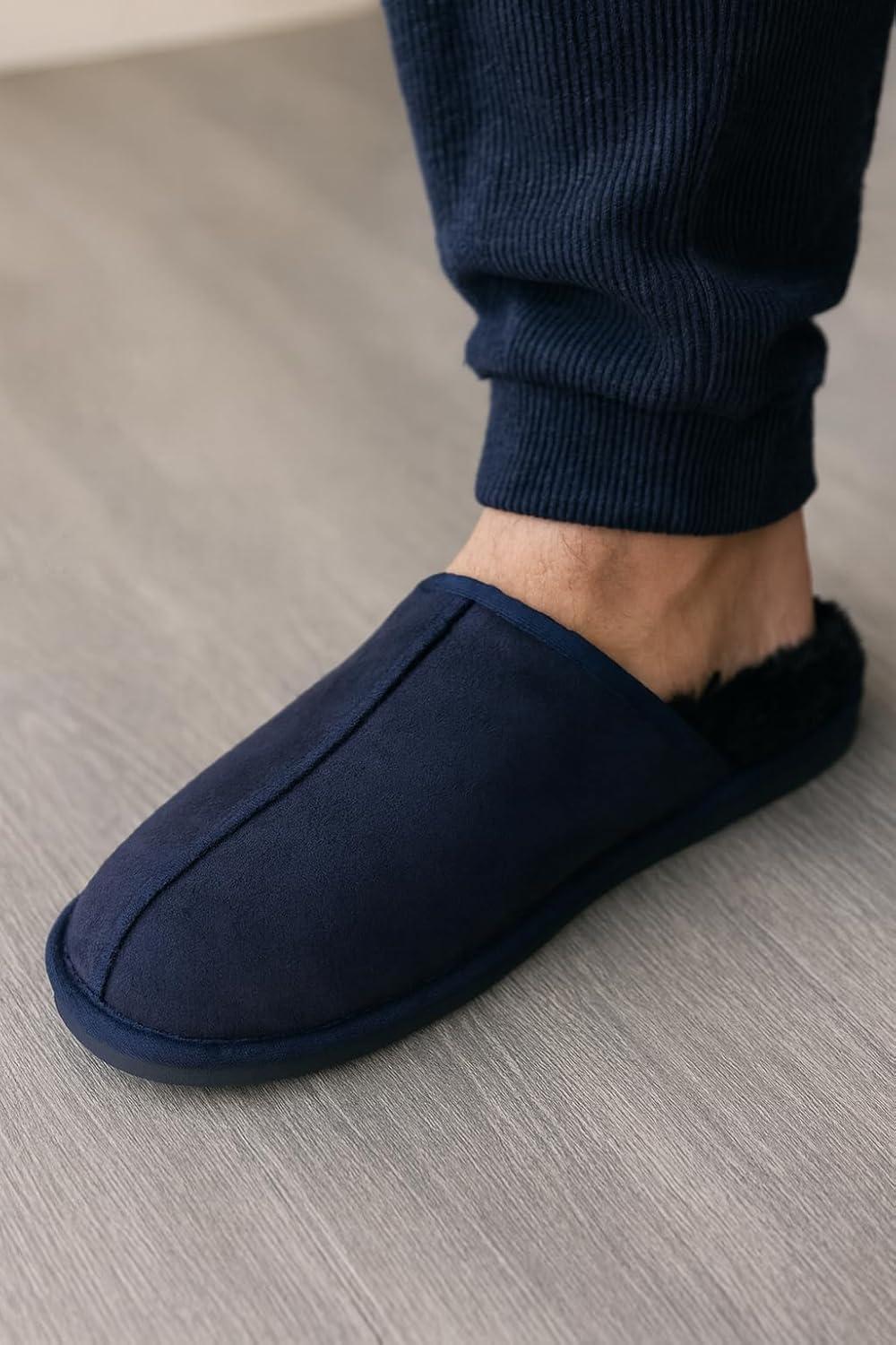 Project Cloud Mens Slippers Genuine Leather with Ultra Soft Memory Foam Insole Scuff House Slippers for Men - Lightweight and Non-Slip Cozy Men Footwear (Colin)(Navy Suede)