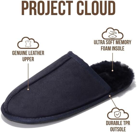 imageProject Cloud Mens Slippers Genuine Leather with Ultra Soft Memory Foam Insole Scuff House Slippers for Men  Lightweight and NonSlip Cozy Men Footwear ColinNavy Suede