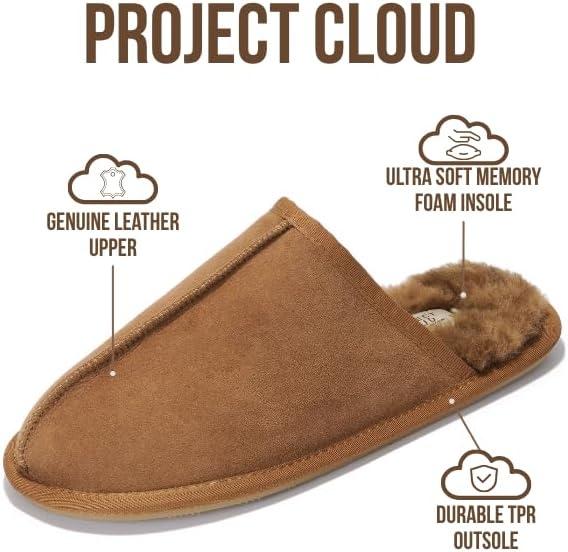 imageProject Cloud Mens Slippers Genuine Leather with Ultra Soft Memory Foam Insole Scuff House Slippers for Men  Lightweight and NonSlip Cozy Men Footwear ColinScotch Suede