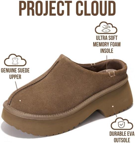 Project Cloud Platform Clogs for Women Footwear – Memory Foam and Non-Slip Genuine Suede Slip-on Mules Shoes, Comfortable Stylish Closed Toe Clogs for Women 2025 (Johnna)(Russ)