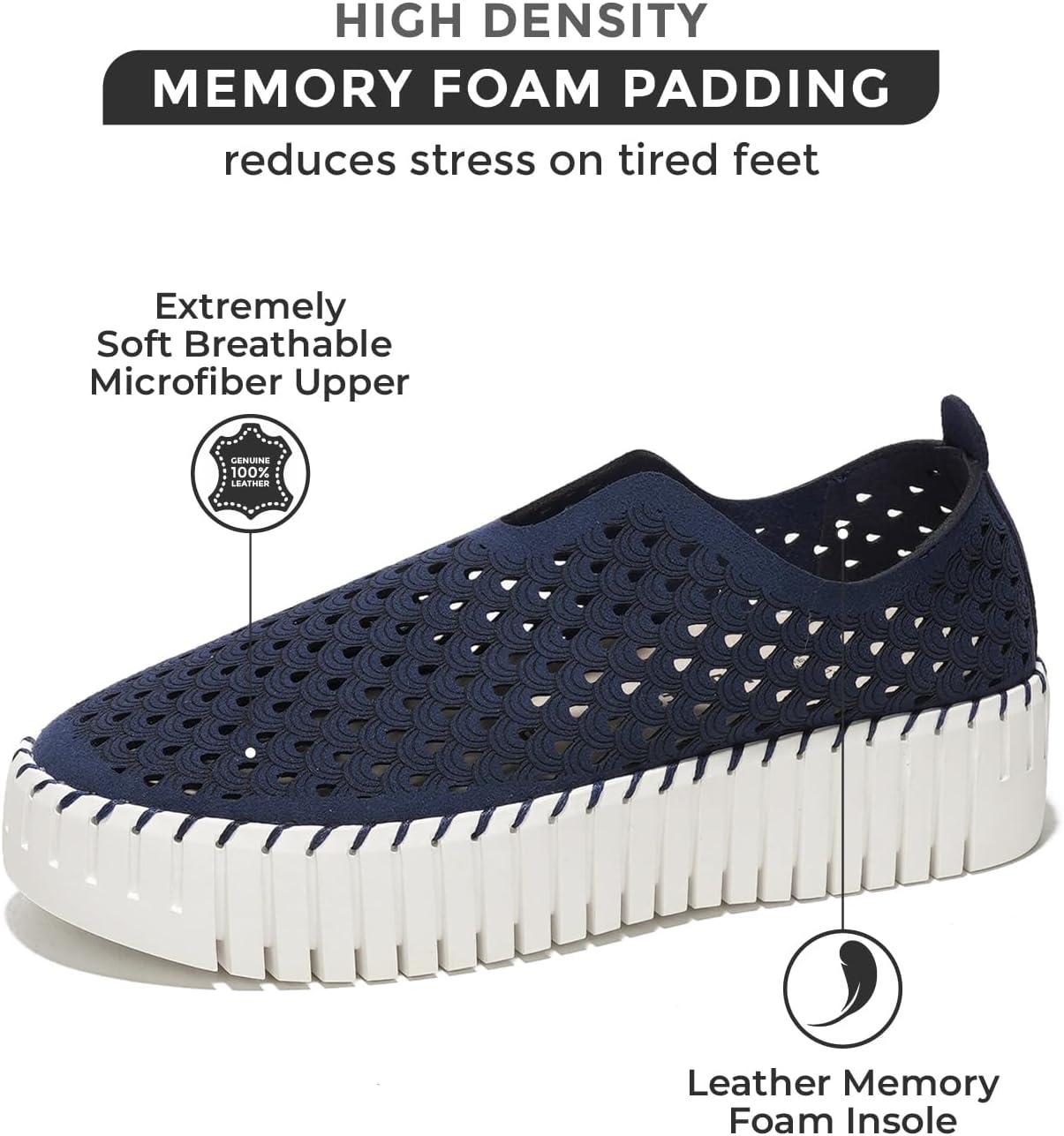 Project Cloud Platform Loafers for Women - Lightweight Spring Shoes for Women - Slip-On Casual Shoes - Non Slip Fashion Sneakers - Leather Insole Womens Footwear (Daffodil)(Blue)
