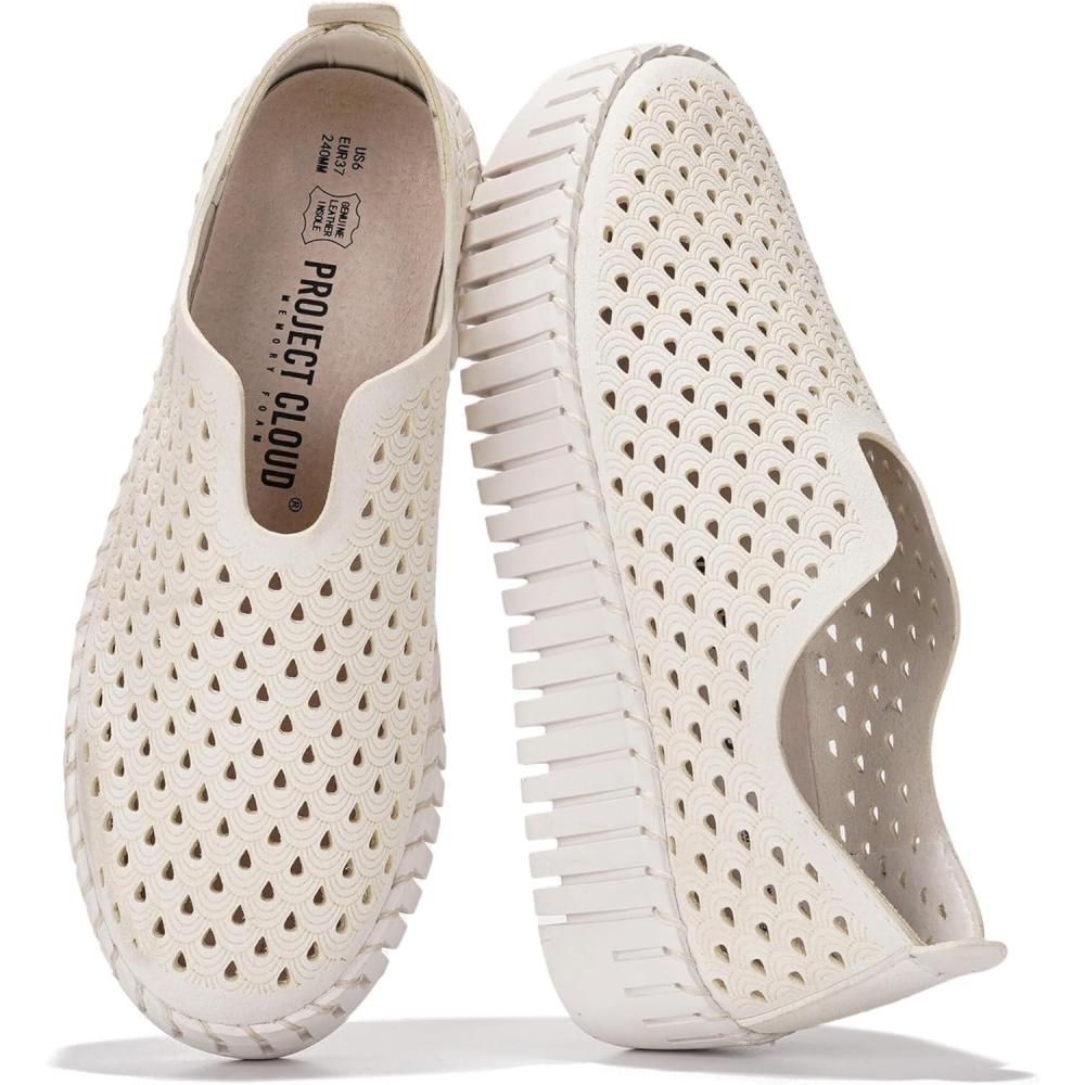 Project Cloud Shoes for Women with Leather Insole – Platform Sneakers for Women & Womens Loafers with Memory Foam, Flexible Womens Shoes Machine Wash & Sockless Wear (Azalea)(White)