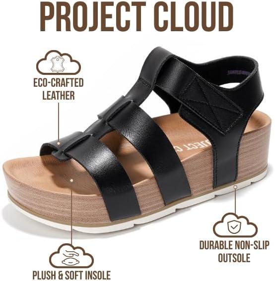 Project Cloud Platform Sandals Women - Comfortable Plush & Soft Insole Ladies Wedges - Non Slip & Lightweight Strap Wedge Sandals for Women 2026 (Phased)(Black)
