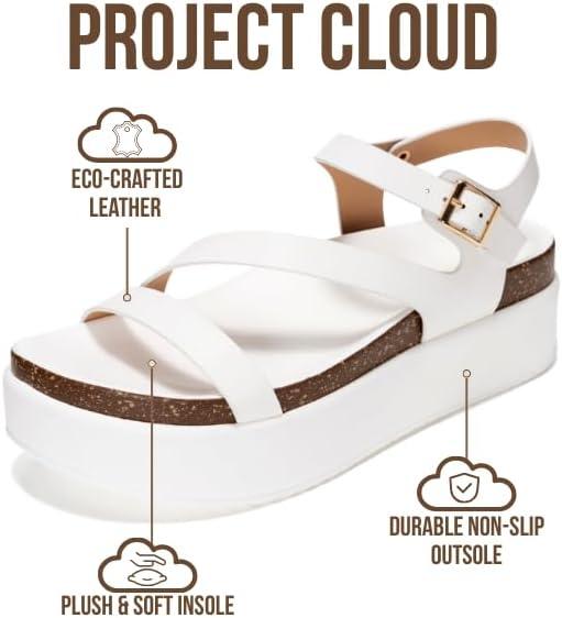 Project Cloud Platform Sandals Women Footwear - Plush & Soft Insole Wedge Sandals for Women Footwear Stylish Platform Shoes with Adjustable Straps (Mellow)(White)