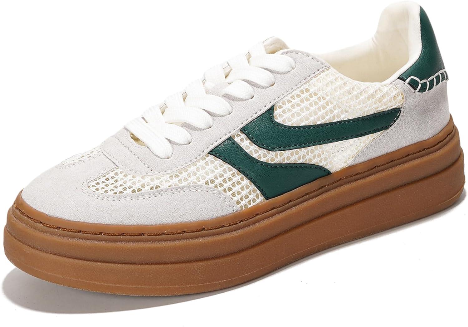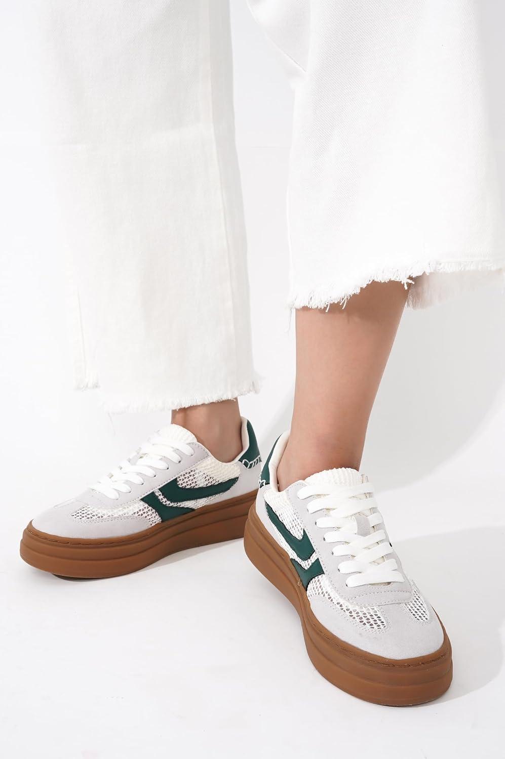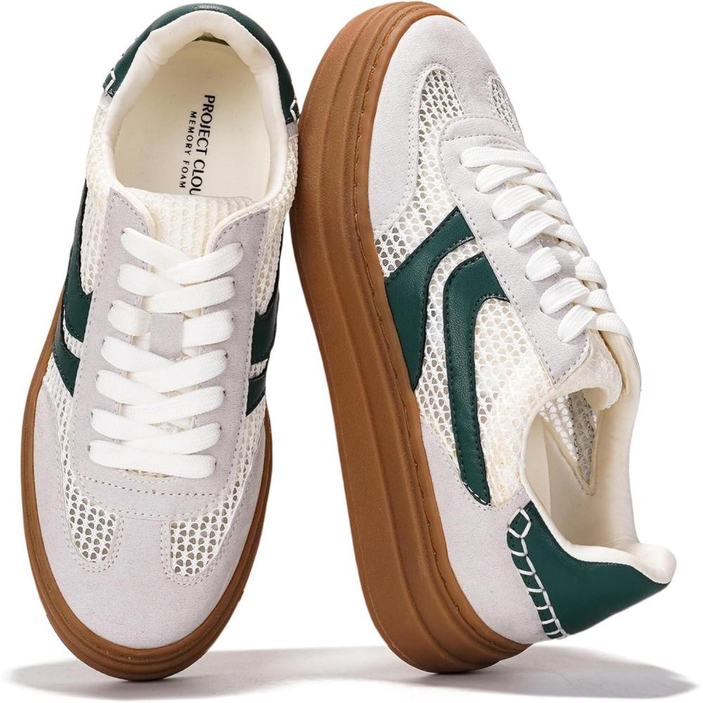 Project Cloud Platform Sneakers for Women Footwear – Memory Foam Insole Womens Shoes, Lightweight and Non-Slip Sole Lace Up Fashion Sneakers for Women 2026 (Volley)(White-green Stripe)