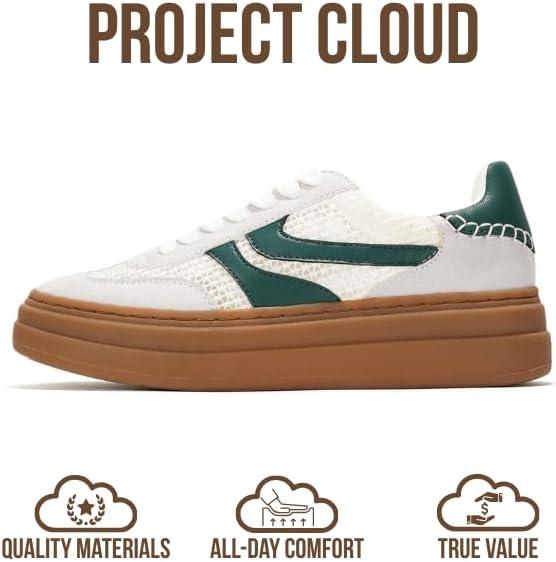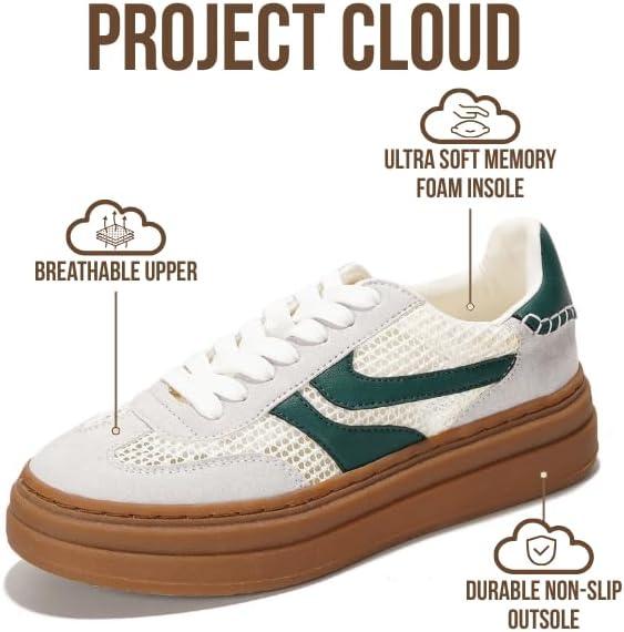 Project Cloud Platform Sneakers for Women Footwear - Memory Foam Insole Womens Shoes, Lightweight and Non-Slip Sole Lace Up Fashion Sneakers for Women 2026 (Volley)(White-green Stripe)