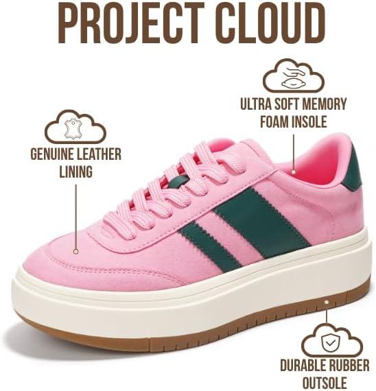 Project Cloud Platform Sneakers for Women – Lightweight Memory Foam Insole Womens Sneakers – Non-Slip Fashion Sneakers for Women Footwear – Women’s Fashion Platform Shoes (Nita)(Pink)