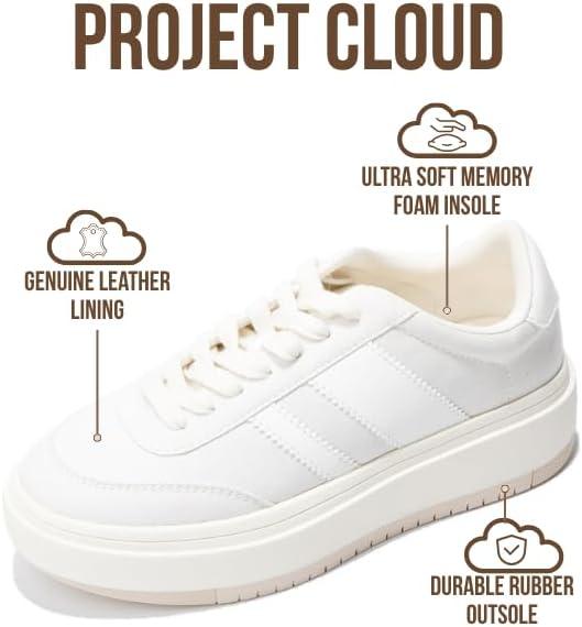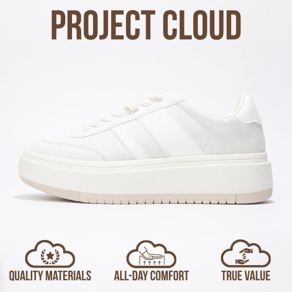 Project Cloud Platform Sneakers for Women – Lightweight Memory Foam Insole Womens Sneakers – Non-Slip Fashion Sneakers for Women Footwear – Women’s Fashion Platform Shoes (Nita)(White-white Stripes)