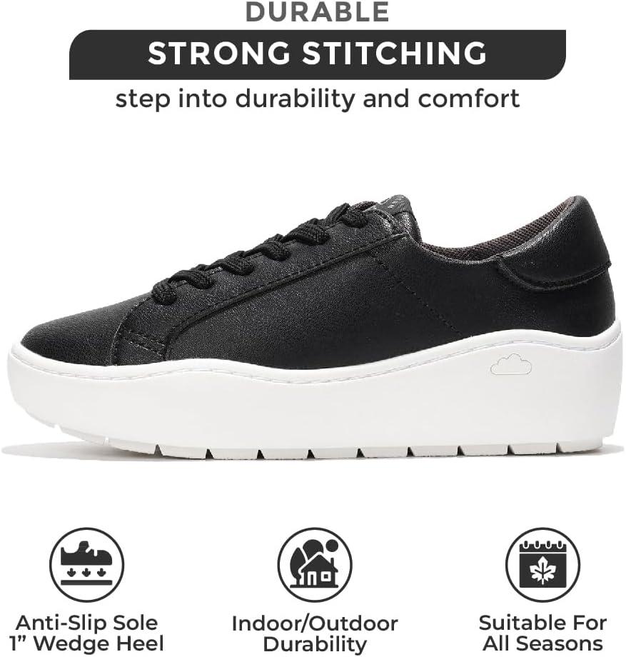 Project Cloud Platform Sneakers for Women – Lightweight Womens Sneakers with Memory Foam Insole – Non Slip Lace-Up Womens Shoes – Perfect Summer Shoes for Women 2025 (Bossy)(Black)