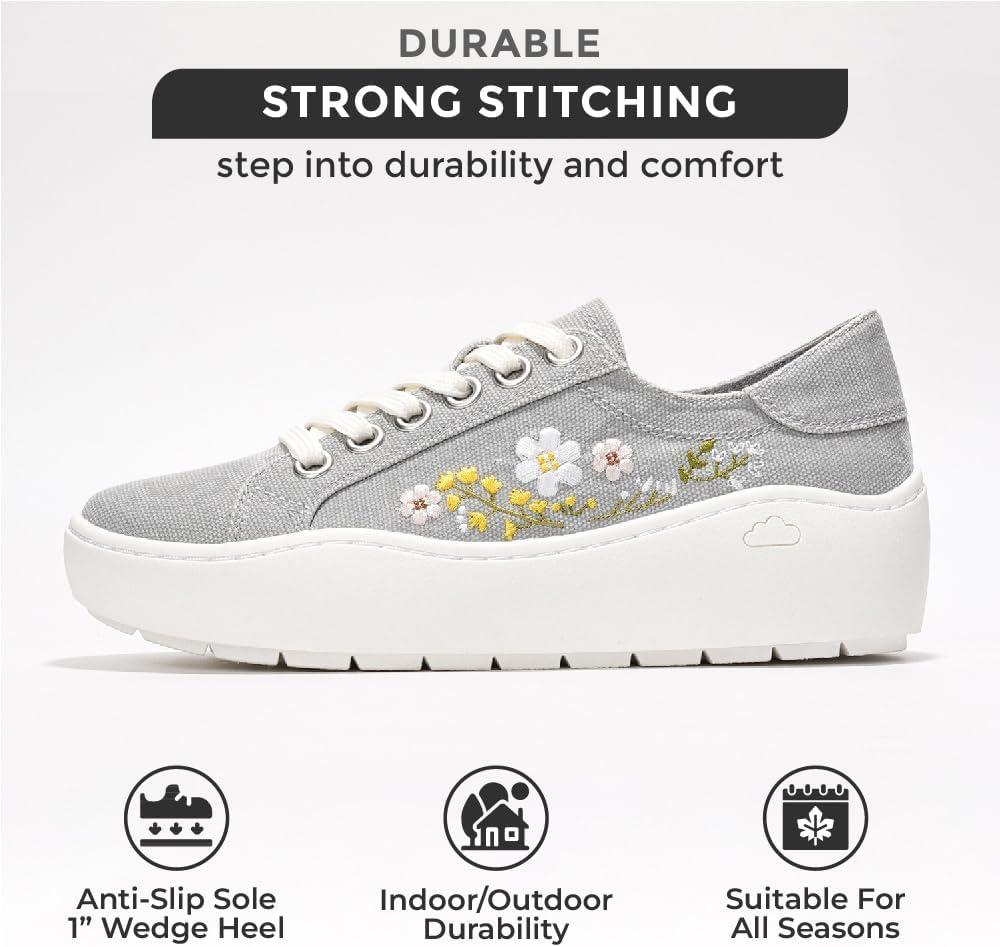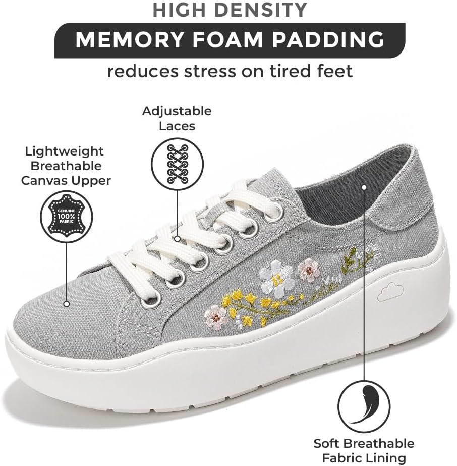 Project Cloud Platform Sneakers for Women – Lightweight Womens Sneakers with Memory Foam Insole – Non Slip Lace-Up Womens Shoes – Perfect Summer Shoes for Women 2025 (Bossy)(Lightgrey – Flowers)