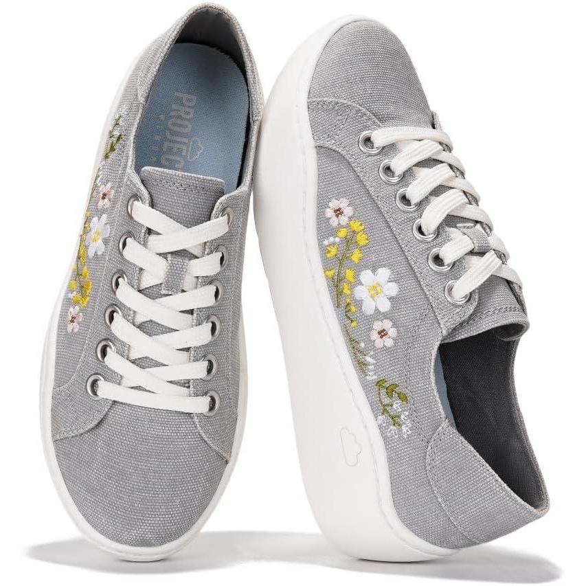 imageProject Cloud Platform Sneakers for Women  Lightweight Womens Sneakers with Memory Foam Insole  Non Slip LaceUp Womens Shoes  Perfect Summer Shoes for Women 2025 BossyLightgrey  Flowers
