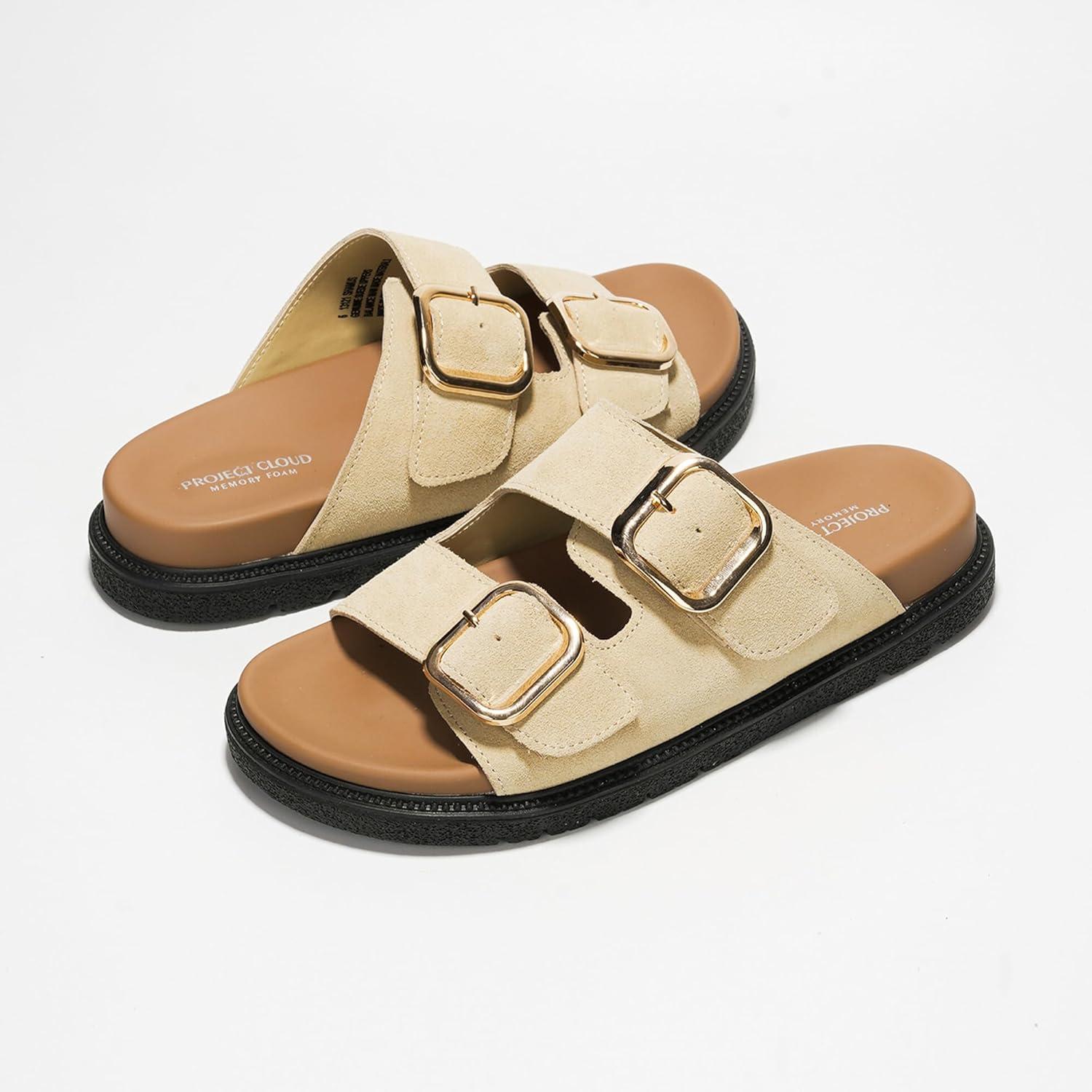 Discover the latest Project Cloud Platform Summer Sandals for Women 2025 – Comfortable and Adjustable Straps Summer Slides with Memory Foam Insole – Non-Slip Casual Womens Sandals(Beige Suede) from and take advantage of our limited-time introductory offer.