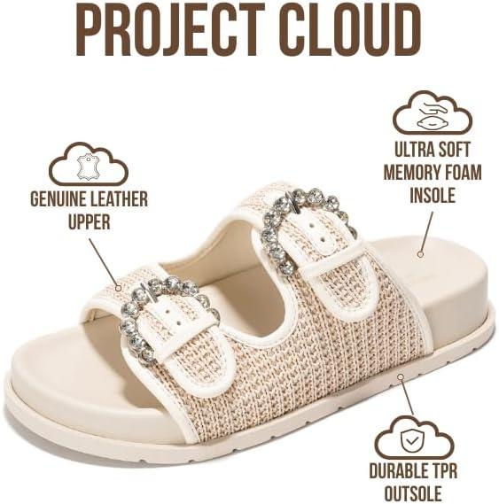 Project Cloud Platform Summer Sandals for Women 2025 - Comfortable and Adjustable Straps Summer Slides with Memory Foam Insole - Non-Slip Casual Womens Sandals(Off-white Raffia)
