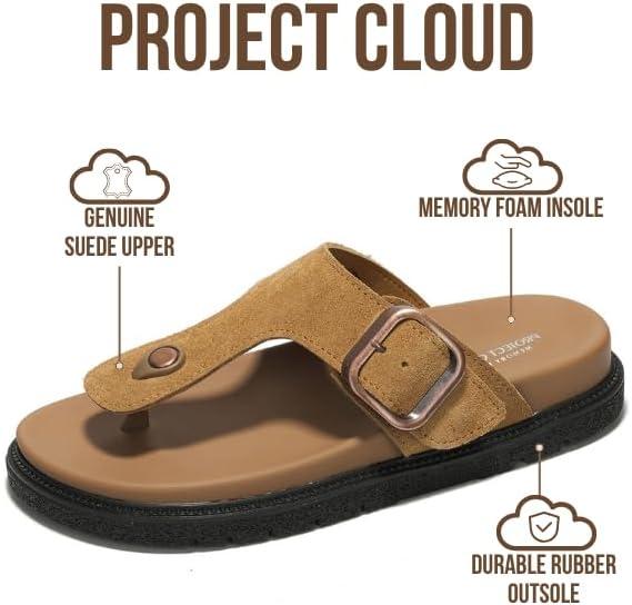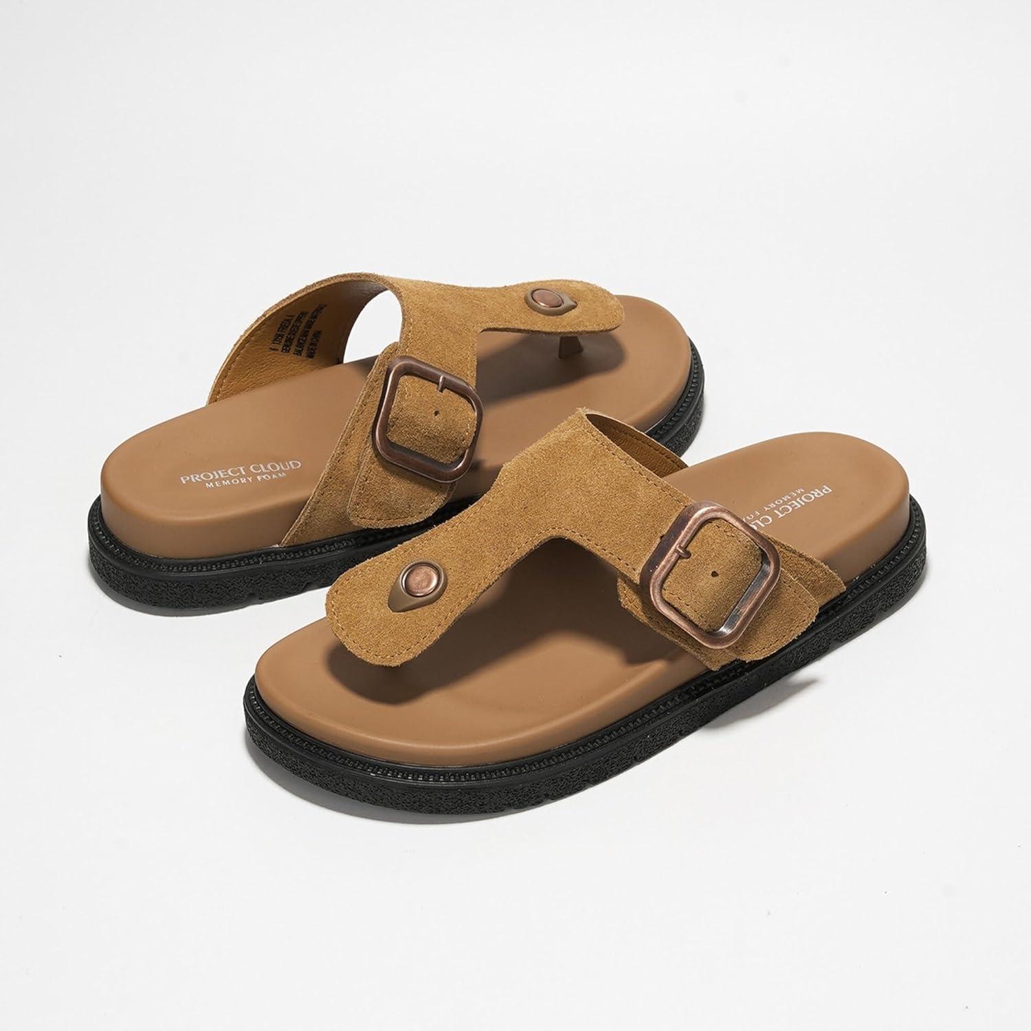 Project Cloud Platform Summer Sandals for Women 2025 - Comfortable and Adjustable Straps Summer Slides with Memory Foam Insole - Non-Slip Casual Womens Sandals(Thong Chestnut)