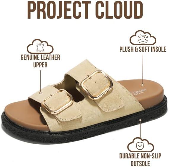 Project Cloud Platform Summer Sandals for Women 2026 - Comfortable and Adjustable Straps Summer Slides - Non-Slip Casual Womens Sandals(Beige Suede)
