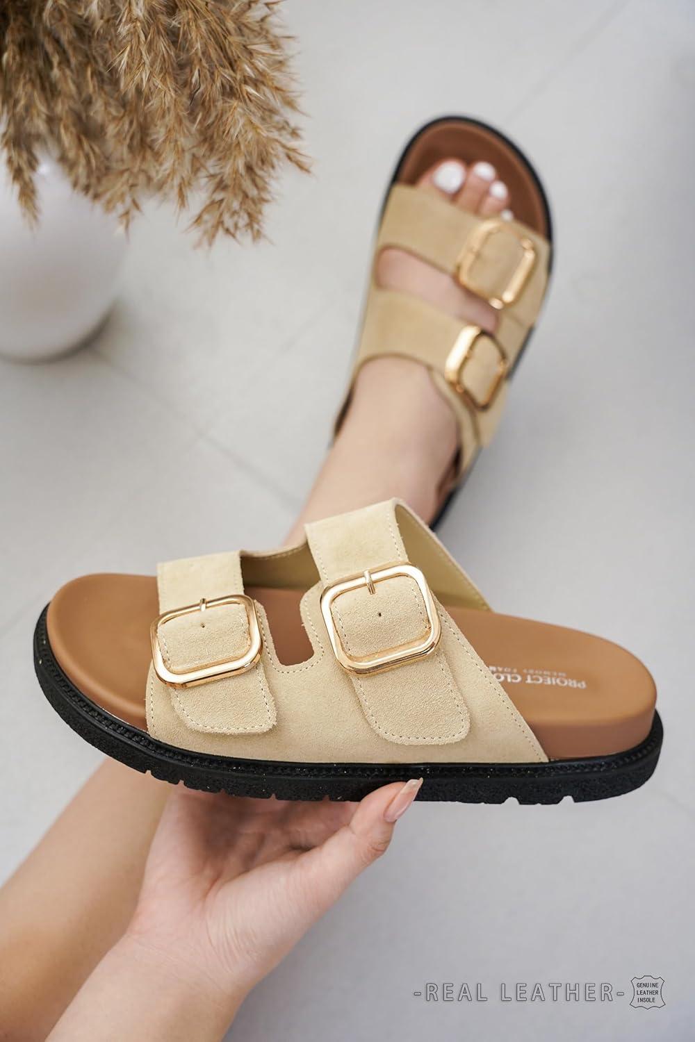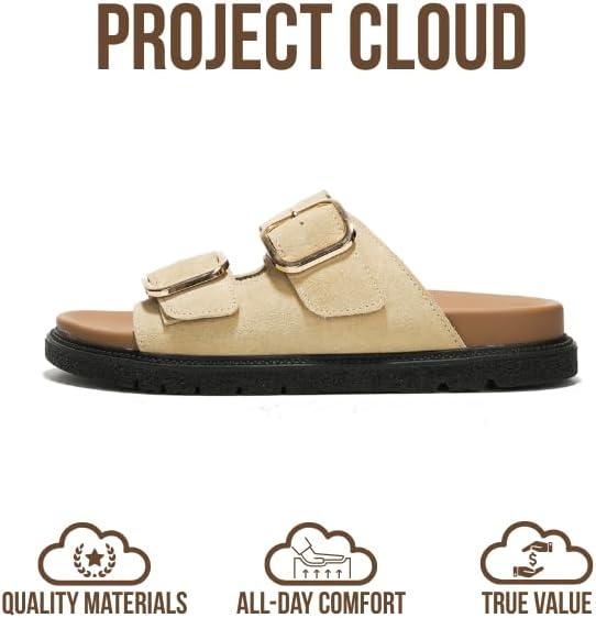 Project Cloud Platform Summer Sandals for Women 2026 – Comfortable and Adjustable Straps Summer Slides – Non-Slip Casual Womens Sandals(Beige Suede)
