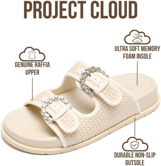 Project Cloud Platform Summer Sandals for Women 2026 – Comfortable and Adjustable Straps Summer Slides – Non-Slip Casual Womens Sandals(Sharl 2 – Off-white Raffia)