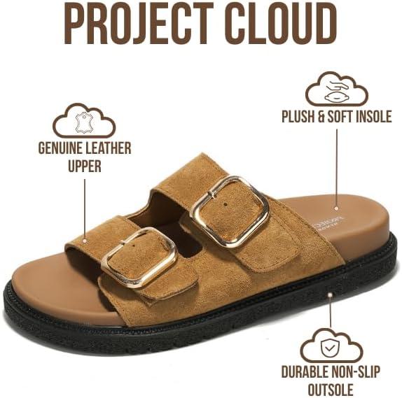 Project Cloud Platform Summer Sandals for Women 2026 – Comfortable and Adjustable Straps Summer Slides – Non-Slip Casual Womens Sandals(Tan)