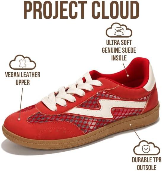 Project Cloud Sneakers for Women – Lace-Up Shoes for Women Trendy Women Sneakers with Memory Foam Insole Women’s Fashion Sneakers Non-Slip Womens Shoes (Irita)(Red Microsuede)