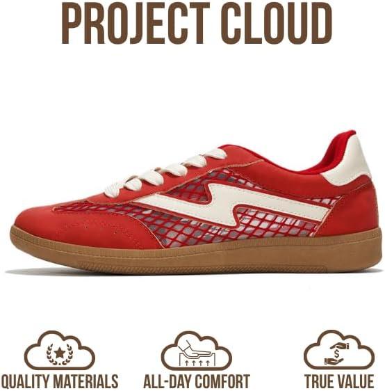 Project Cloud Sneakers for Women - Lace-Up Shoes for Women Trendy Women Sneakers with Memory Foam Insole Women's Fashion Sneakers Non-Slip Womens Shoes (Irita)(Red Mesh)