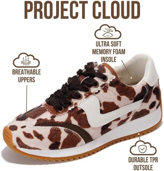 Project Cloud Sneakers for Women – Lightweight Lace-Up Shoes for Women with Memory Foam Insoles – Trendy Womens Shoes – Non-Slip, Comfortable Womens Sneakers (Madison)(Cow)