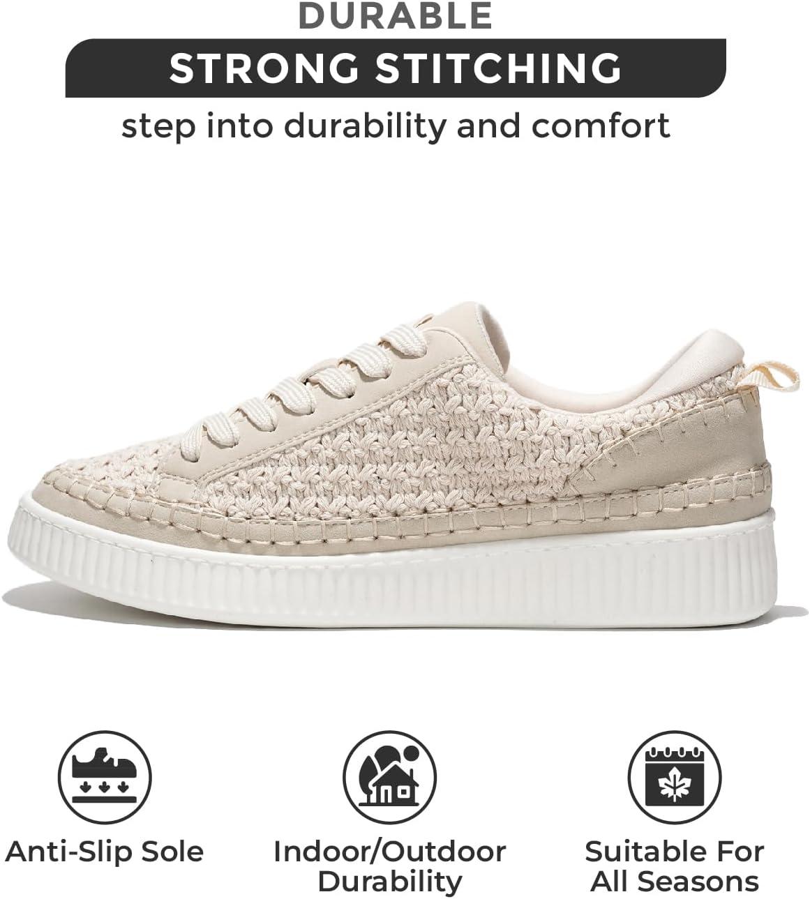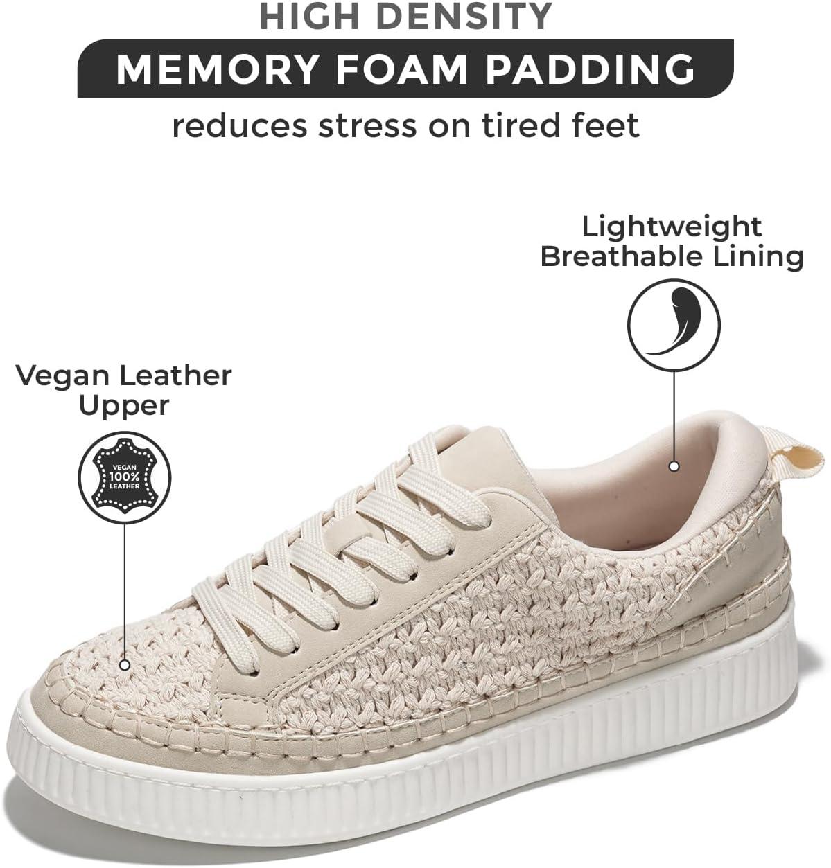 Project Cloud Sneakers for Women – Memory Foam Shoes for Women Lace-Up Women’s Fashion Sneakers Non-Slip Womens Trendy Shoes (Lona)(Beige)