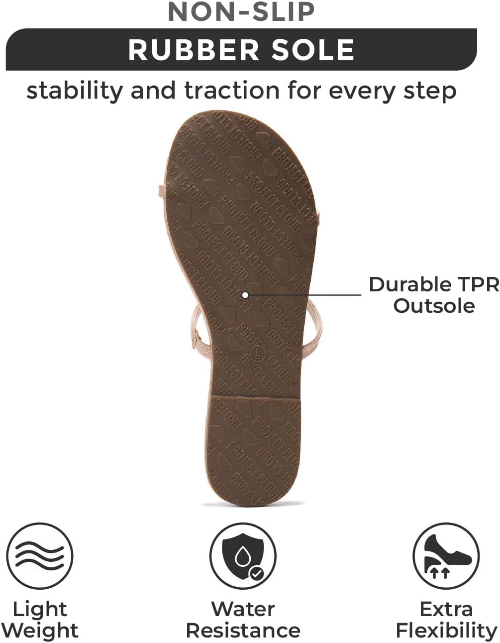 imageProject Cloud Summer Sandals for Women 2025  Memory Foam Insole and Vegan Leather Beach Flip Flops for Women  Non Slip and Lightweight Double Strap Womens Sandals TransitionGold