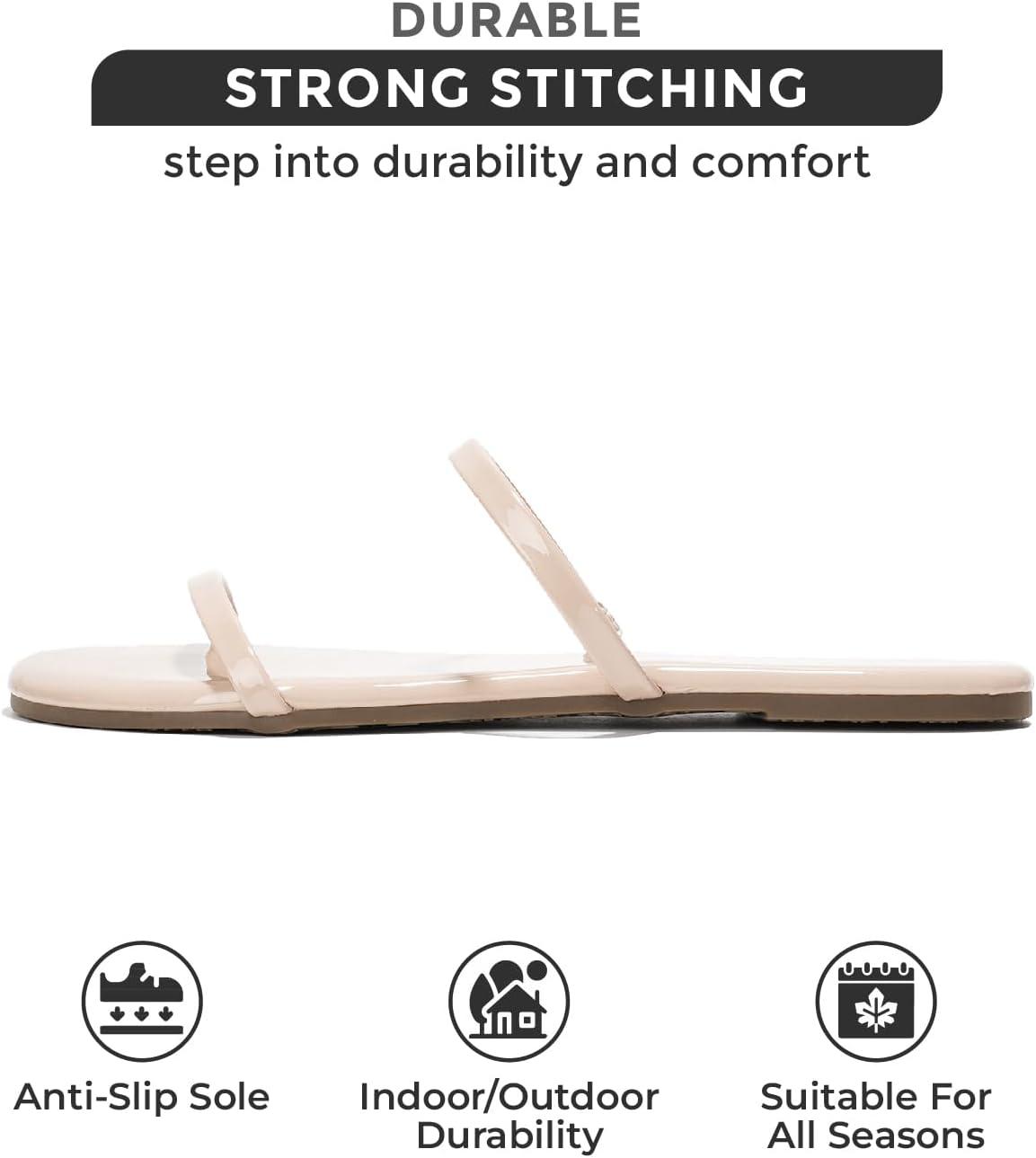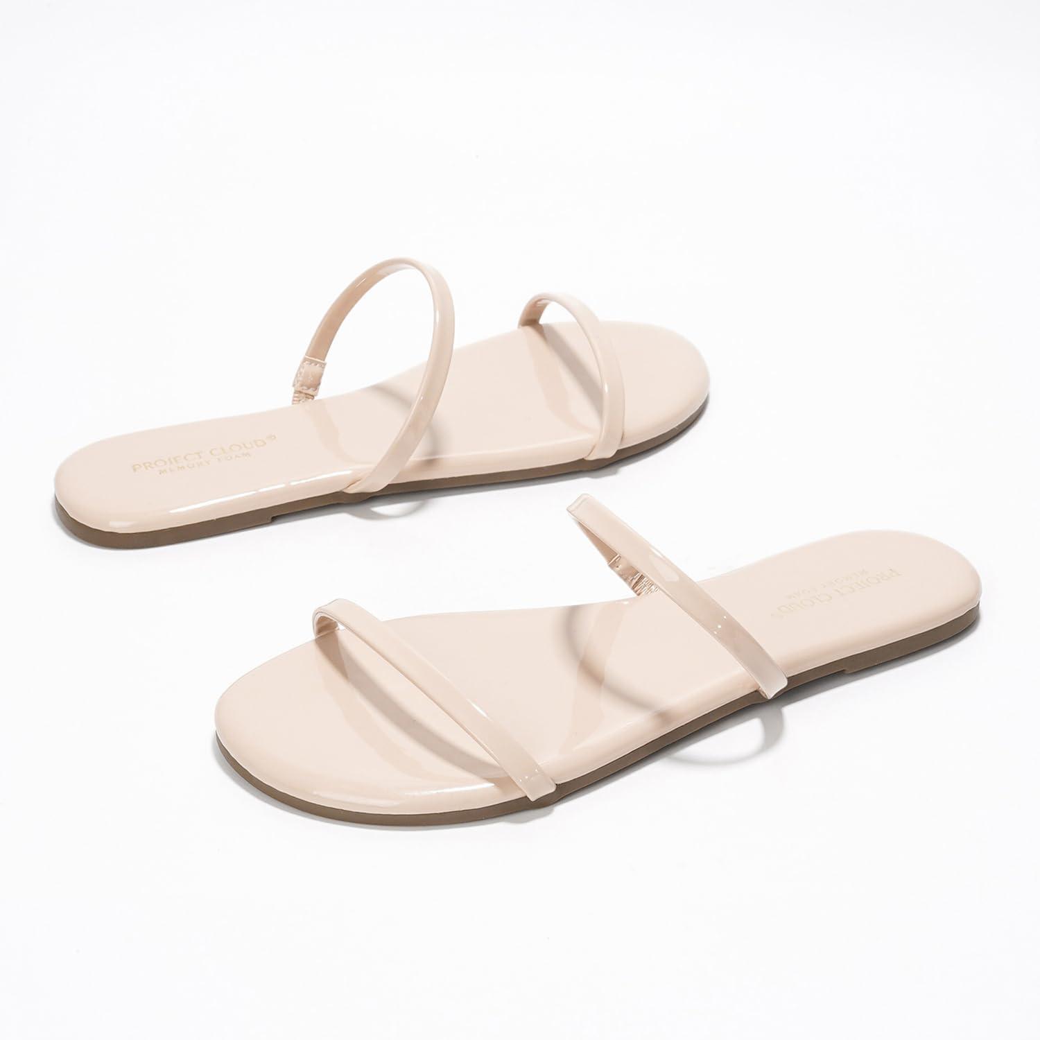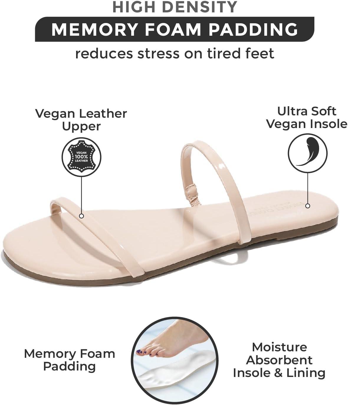 Project Cloud Summer Sandals for Women 2025 - Memory Foam Insole and Vegan Leather Beach Flip Flops for Women - Non Slip and Lightweight Double Strap Womens Sandals (Transition)(Beige Patent)