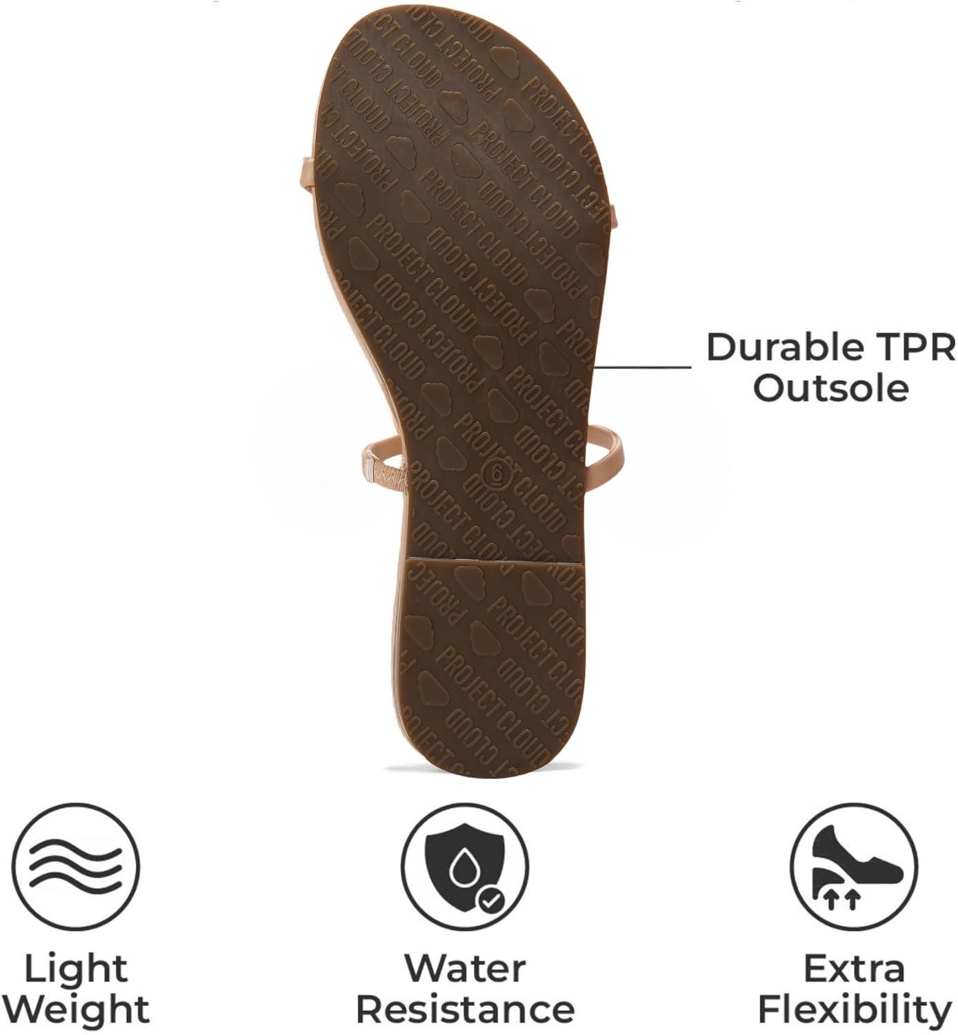 Project Cloud Summer Sandals for Women 2025 – Memory Foam Insole and Vegan Leather Beach Flip Flops for Women – Non Slip and Lightweight Double Strap Womens Sandals (Transition)(Tan)