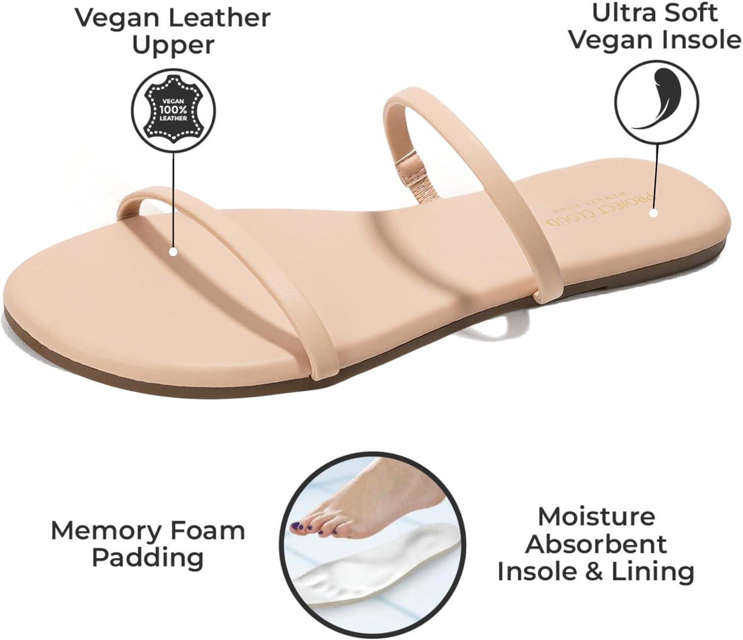 Project Cloud Summer Sandals for Women 2025 - Memory Foam Insole and Vegan Leather Beach Flip Flops for Women - Non Slip and Lightweight Double Strap Womens Sandals (Transition)(Beige)