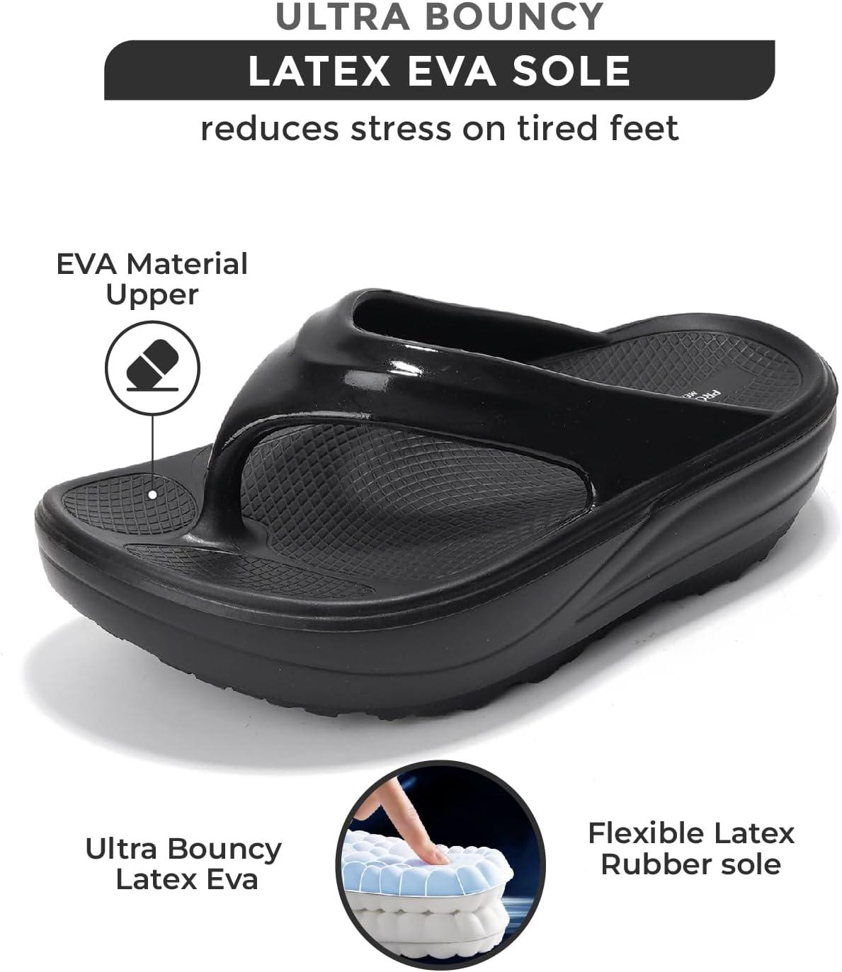 Project Cloud Super Foam Flip Flops for Women Footwear – Memory Foam and Lightweight Platform Sandals Women Beach Vacation Essentials – Non Slip Durable and Soft Slippers (Abra)(Black)
