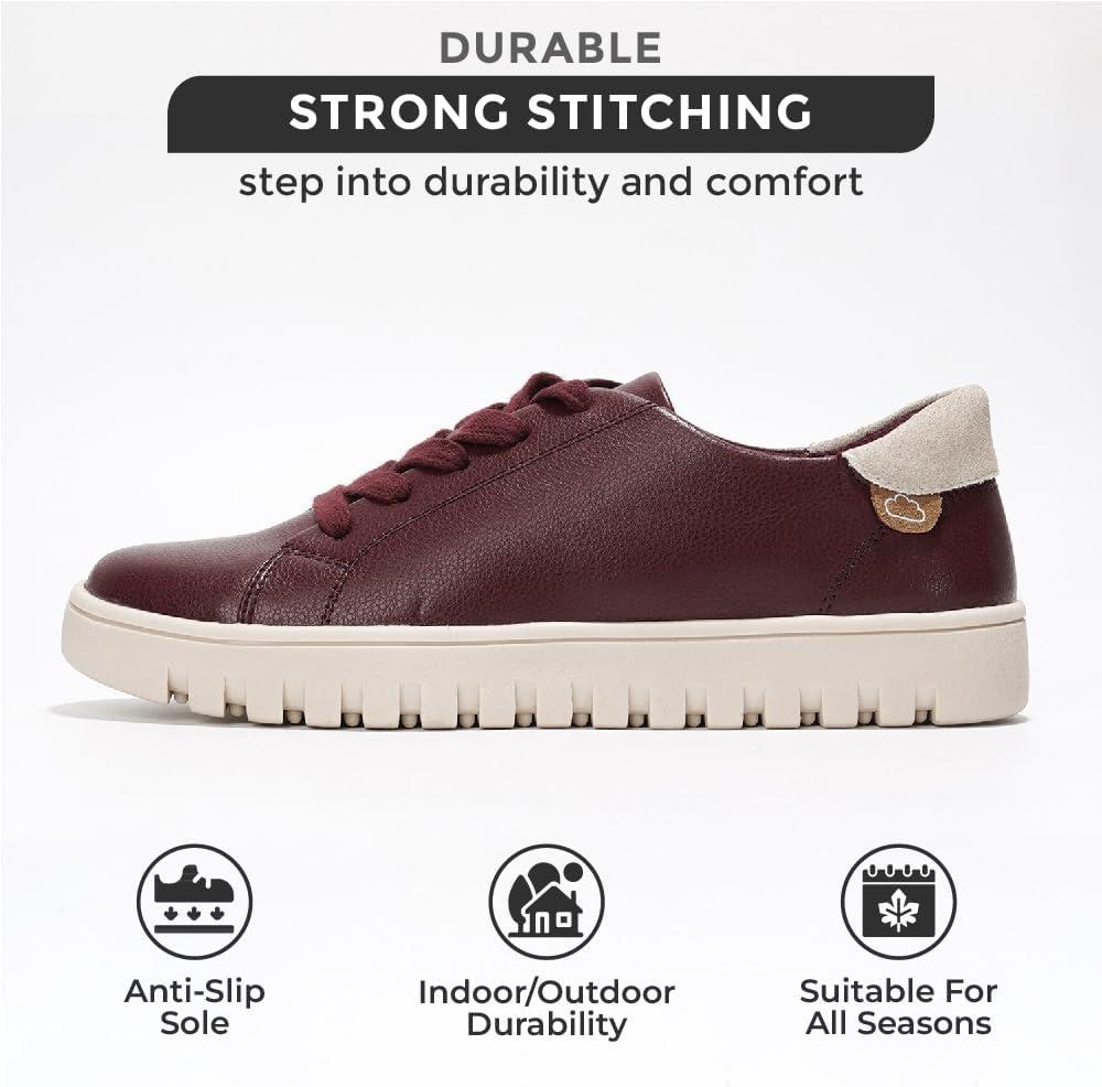 Project Cloud Tennis Shoes Womens Sneakers - Memory Foam Non Slip Fashion Ladies Shoes for Women Footwear - Lightweight Lace Up Comfortable Platform Sneakers (Paisley)(Maroon)
