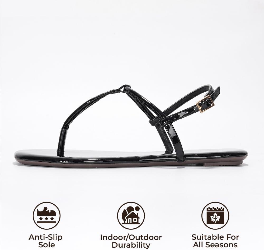 Project Cloud Thong Sandals for Women 2025 – Memory Foam and Lightweight Summer Essentials – Non Slip Flip Flops for Women Footwear with Back Strap Beach Flats Sandals (Celebration)(Black)