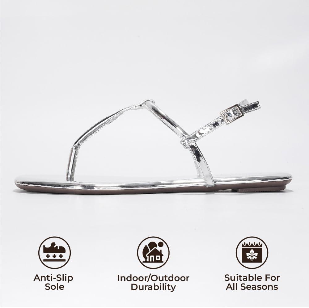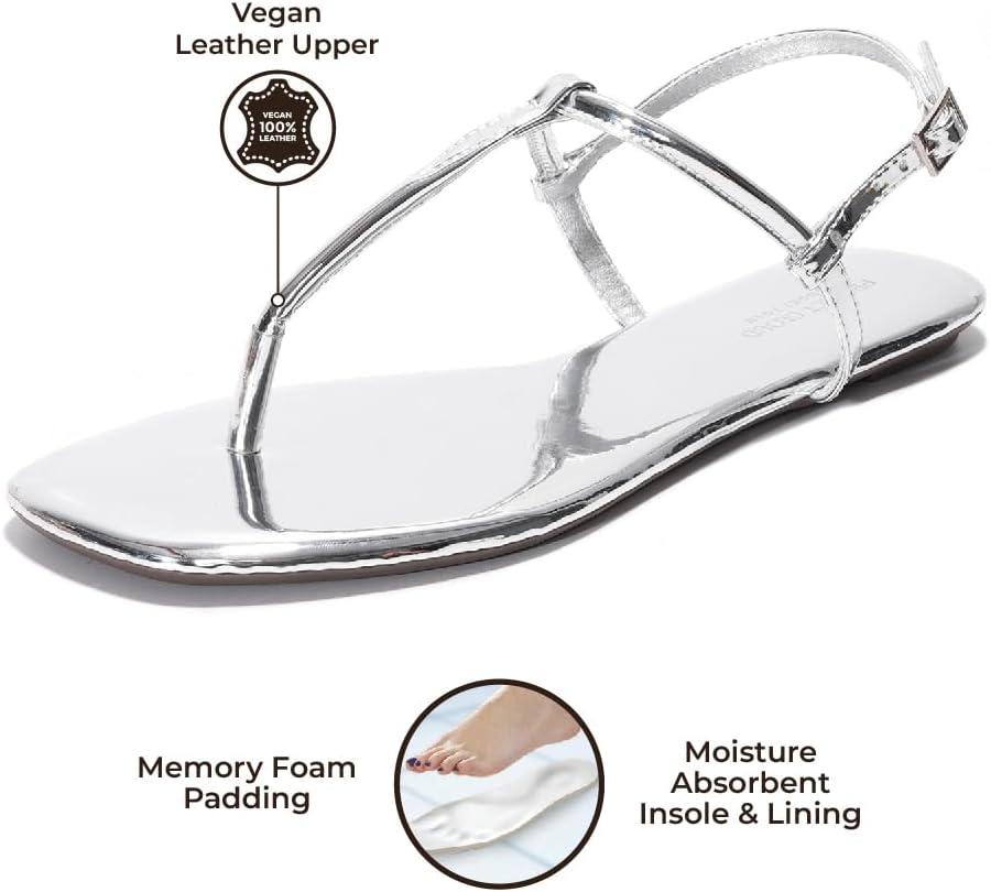 Project Cloud Thong Sandals for Women 2025 – Memory Foam and Lightweight Summer Essentials – Non Slip Flip Flops for Women Footwear with Back Strap Beach Flats Sandals (Celebration)(Silver)