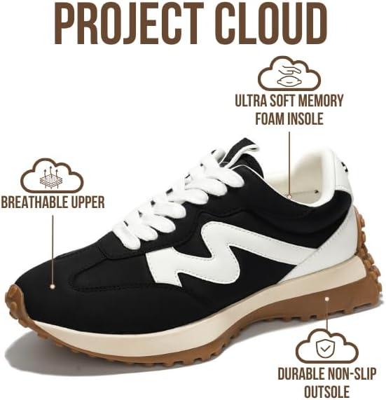 Project Cloud Trendy Fashion Sneakers for Women 2026 – Memory Foam and Non-Slip Comfortable Casual Ladies Shoes for Womens Fashion Sneakers – Lightweight Lace-up Shoes (Lecco)(Black)