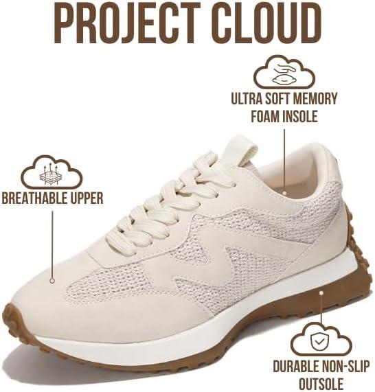 Project Cloud Trendy Fashion Sneakers for Women 2026 - Memory Foam and Non-Slip Comfortable Casual Ladies Shoes for Womens Fashion Sneakers - Lightweight Lace-up Shoes (Lecco)(Cream)