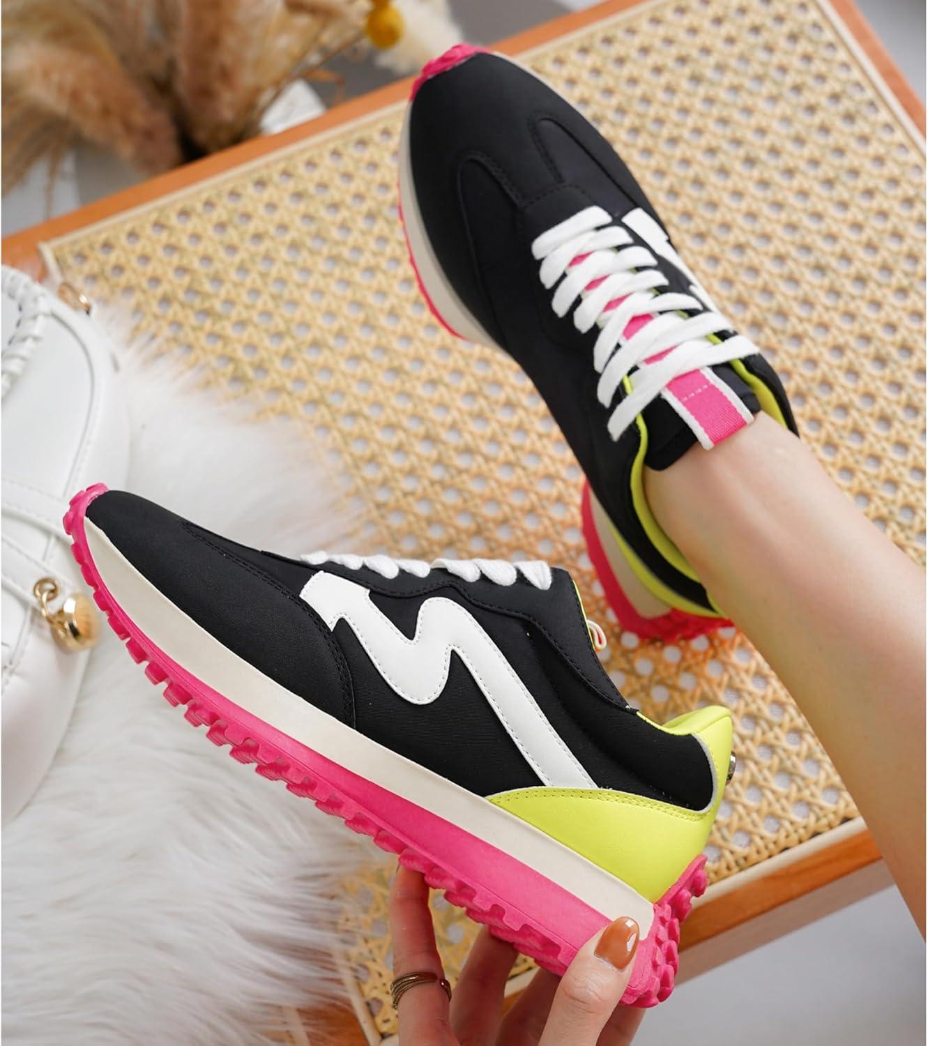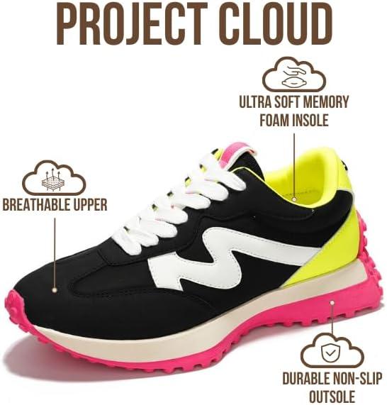 Project Cloud Trendy Fashion Sneakers for Women 2026 – Memory Foam and Non-Slip Comfortable Casual Ladies Shoes for Womens Fashion Sneakers – Lightweight Lace-up Shoes (Lecco)(Multicolor)