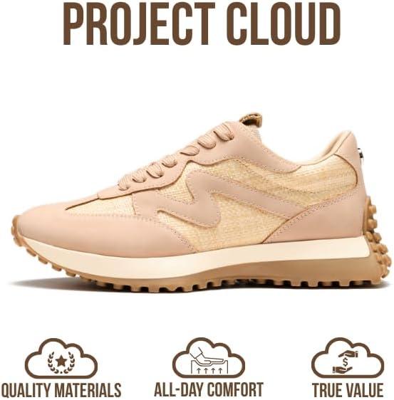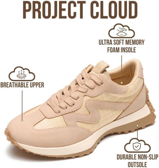 Project Cloud Trendy Fashion Sneakers for Women 2026 - Memory Foam and Non-Slip Comfortable Casual Ladies Shoes for Womens Fashion Sneakers - Lightweight Lace-up Shoes (Lecco)(Raffia)