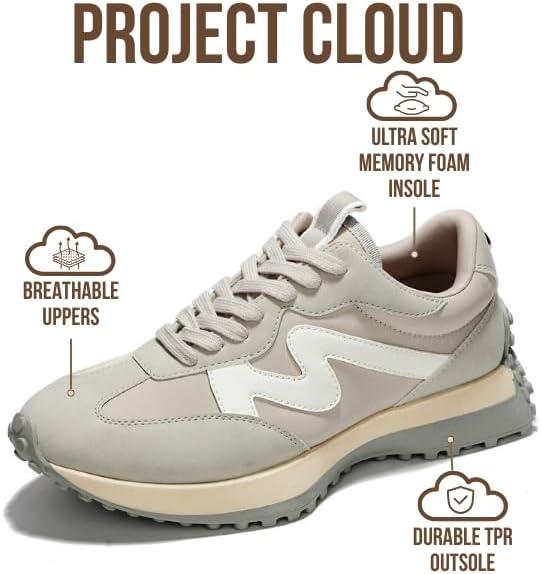 Project Cloud Trendy Sneakers for Women - Memory Foam and Non-Slip Comfortable Casual Ladies Shoes for Womens Fashion Sneakers - Lightweight Lace-up Shoes (Lecco)(Grey)