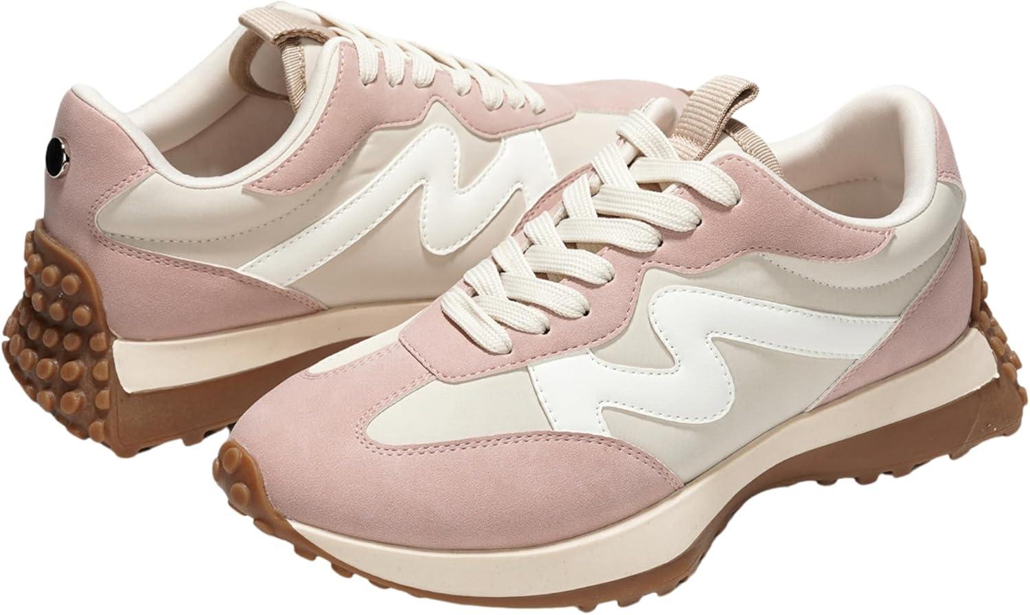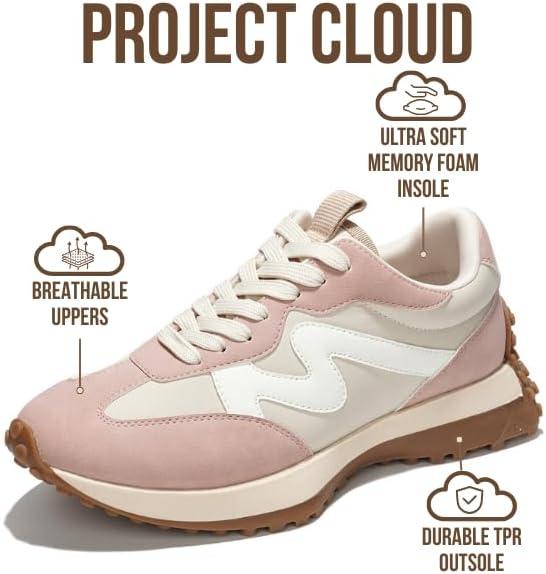 Project Cloud Trendy Sneakers for Women - Memory Foam and Non-Slip Comfortable Casual Ladies Shoes for Womens Fashion Sneakers - Lightweight Lace-up Shoes (Lecco)(Nude)