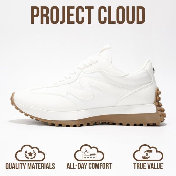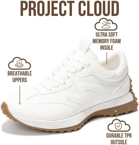 Project Cloud Trendy Sneakers for Women - Memory Foam and Non-Slip Comfortable Casual Ladies Shoes for Womens Fashion Sneakers - Lightweight Lace-up Shoes (Lecco)(White)